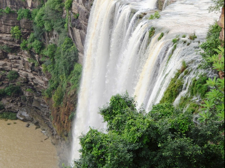 The break in channel gradient allows water to fall vertically giving rise to a waterfall. The Indian Niagara, located 72 km from the city of Rewa, is the highest among the waterfalls in Madhya Pradesh. The gigantic 466 ft waterfall is created when the river Odda descends the Rewa Plateau.